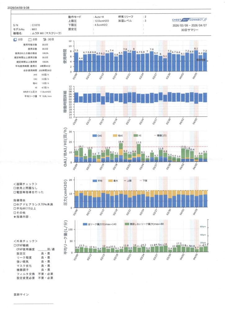 主治医からは「毎日継続して使えていることが一番大切です。AHIもまだ一桁台ですし、許容範囲内ですよ」とのコメントをいただきました。